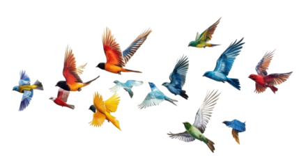 Flying birds silhouettes pattern wallpaper. PNG transparent. isolated bird flying. tattoo design. template for card, package, and wallpaper.