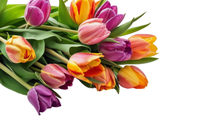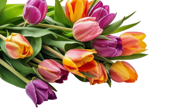 Vibrant Bouquet of Mixed Tulips in Full Bloom on transparent background PNG file