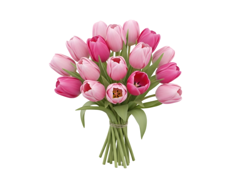 Vibrant Pink and Fuchsia Tulips Bouquet Isolated on Transparent Background Isolated on Transparent B