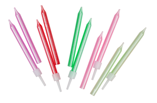 Different types of birthday candles cut out isolated transparent background