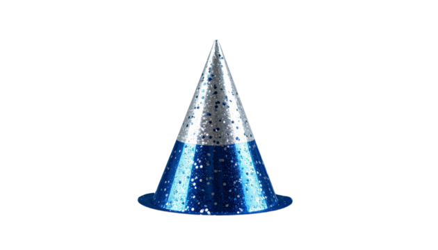 Festive Blue Party Hat with Gold Polka Dots and Pompoms, PNG