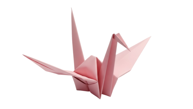 Pink origami crane PNG isolated on transparent background, traditional Japanese art for peace and good luck