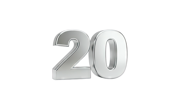 3D Silver number 20 isolated on a transparent background