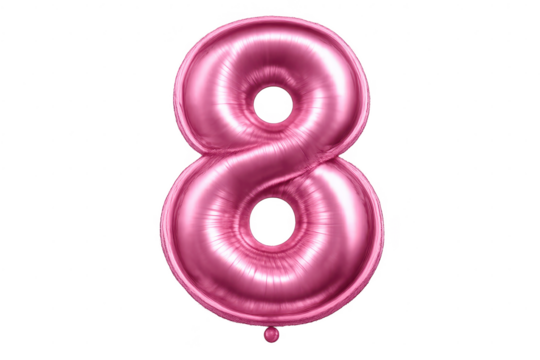 Pink Number Eight Foil Balloon on transparent background birthday theme