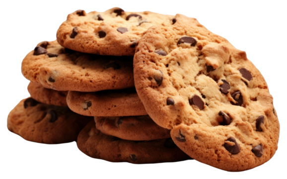 Brunette woman quietly enjoying chocolate chip cookies transparent background
