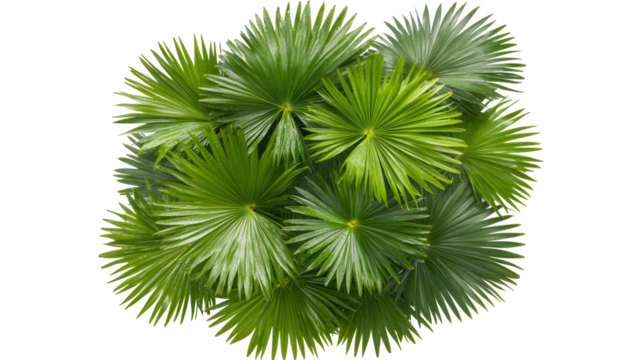 Lush Overhead View of Bismarck Palm Leaves on transparent background
