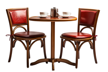 Classic Wooden Bistro Set Awaits Two for Coffee and Conversation. on a White or Clear Surface PNG Transparent Background.