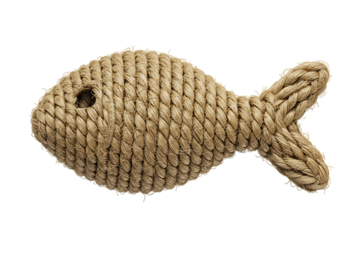 麻縄で編まれた愛らしい小魚のおもちゃ 自然な色合いと質感が魅力的