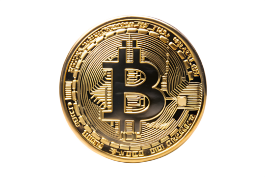 A detailed illustration of two gold coins with the Bitcoin logo, symbolizing Bitcoin's growing influence in modern business and finance. Isolated on a white background