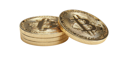 Golden Bitcoin coin isolated PNG, cryptocurrency digital money for investment and finance, decentralized virtual currency on transparent background