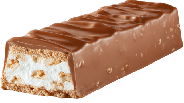 Partially opened chocolate bar with bite missing on transparent background