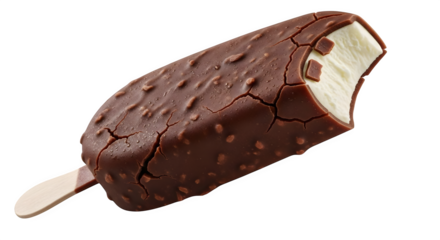 Isolated Bitten Ice Cream Bar with Chocolate Coating and Almonds
