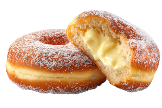 Donuts isolated set fresh donut bitten and half a donut on transparent background