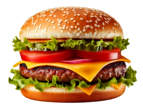 Juicy beef burger with cheese fast food restaurant delicious isolated on transparent background