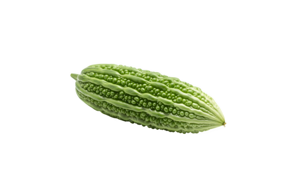 Single green bitter gourd or bitter melon isolated with clipping path in png file format