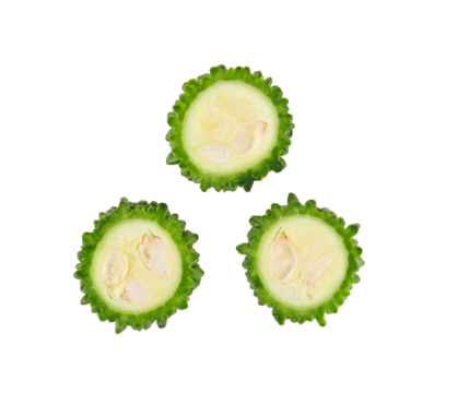 Slice of bitter melon .Bitter gourd (Momordica charantia L.) on transparent png