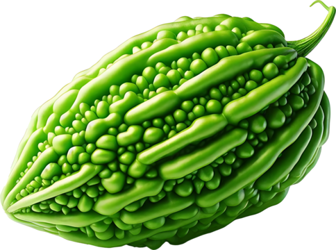 Bitter melon fruit is sliced lengthwise, vegetables that are good for your health isolate on transparent background, element for design