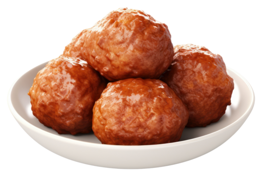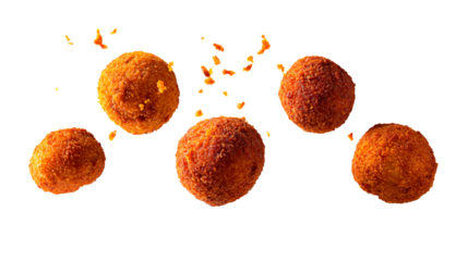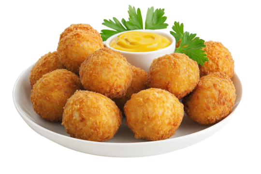 Dutch bitterballen meat croquettes with mustard dip isolated on transparent white background
