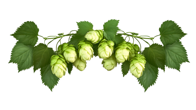 twig of hop isolated on transparent, png. Beer hops ingredient. Branch of fresh hops cones. Hops herb for medicinal herb