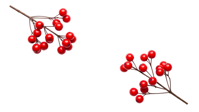 Bright red berries on dark branches against a stark black background natural detail