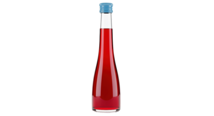 Isolated red liquid in a glass bottle with a blue cap suitable for packaging or advertising