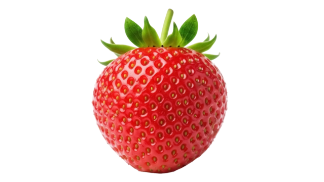 Isolated red strawberry with green stem, a fresh fruit for healthy eating and cooking