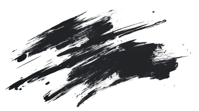 Black ink brush stroke on a transparent background