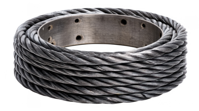 Coiled Steel Wire Rope with Metal Ring isolated on transparent background