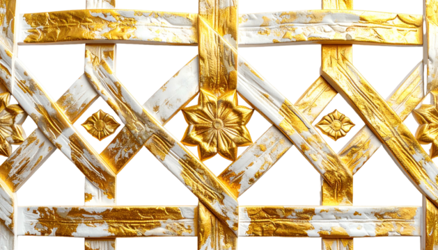 Intricate gold carving featuring roses, leaves, and pearls. Baroque and Rococo style elements combine in this elegant, symmetrical design against a black background.