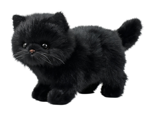 PNG of A cute black plush kitten toy with big eyes, perfect for kids and cat lovers alike, showcasing its soft, furry texture. - on Transparent or White BG