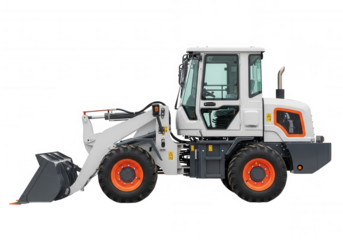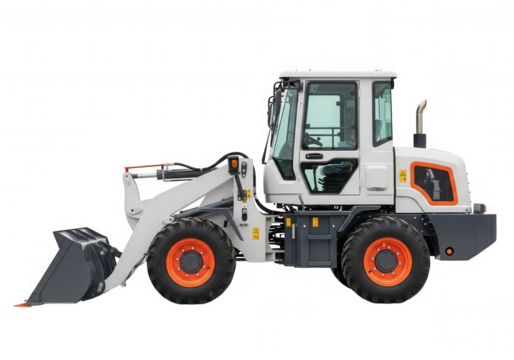 White loader machine with orange accents isolated on a transparent background