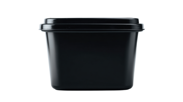 a black cup with a lid on a white surface