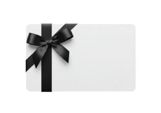 Isolated gift card with black satin bow, gift giving, and presentation accessory item