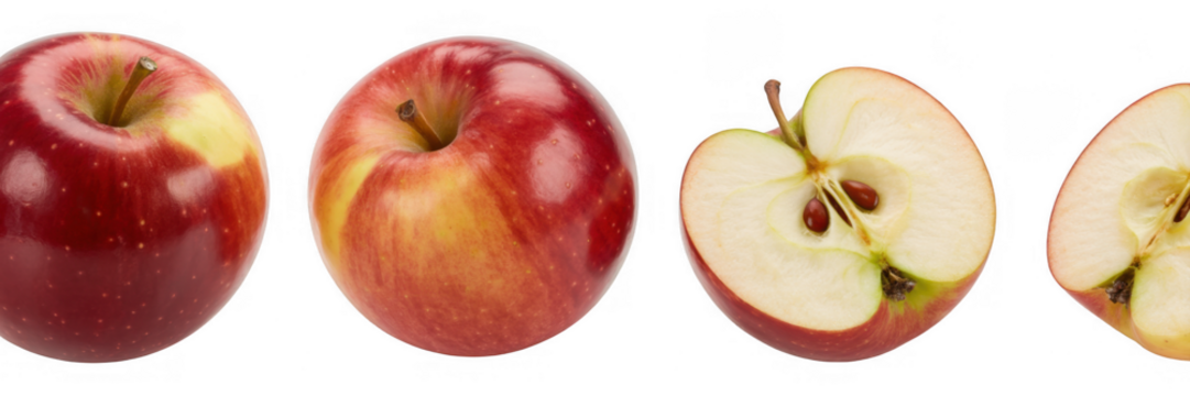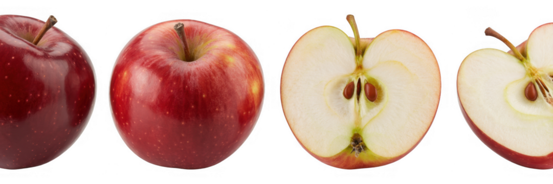 Red apples and sliced apples fruit healthy isolated on a transparent background