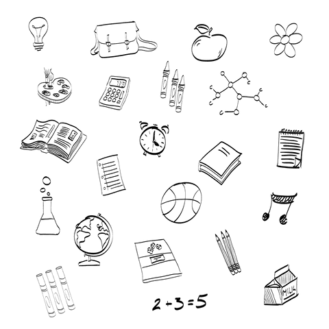 Blackboard mockup with notebooks and green apple on transparent background