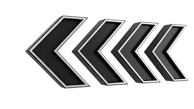 Three-dimensional black arrows pointing left with silver trim
