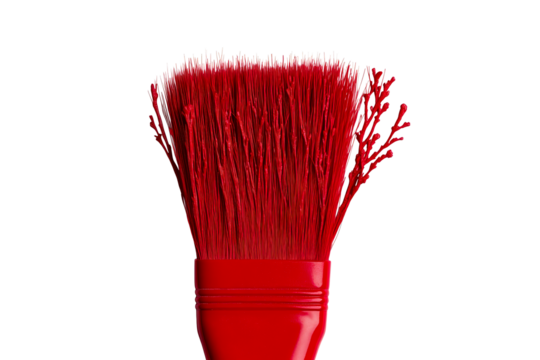 Red paintbrush bristles, creative art tool on black background, cut out transparent