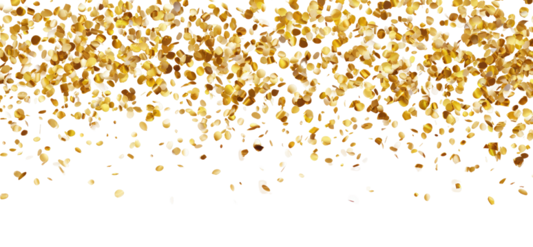 Abstract golden and yellow bokeh sparkles and dust particles forming a decorative frame on a black background isolated on transparent background