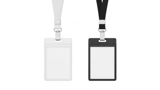 White and black identification badges with lanyards isolated on a transparent background image