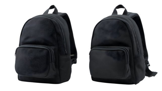 Minimalist backpack with spectacles, mobile, notepads on transparent background