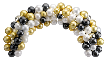 Luxury gold and black balloon arch arrangement for celebrations, isolated on transparent PNG file