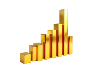 A golden 3D bar chart with an upward-pointing arrow against a black background