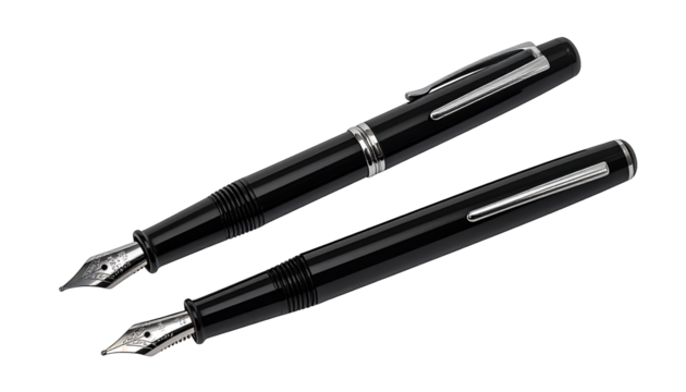 Elegant Black and Gold Fountain Pen Isolated on White Background.