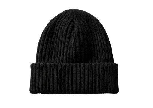 Black Beanie Hat in Simple Studio Shot with Neutral Lighting on White Background for Fashion Apparel isolated on transparent background