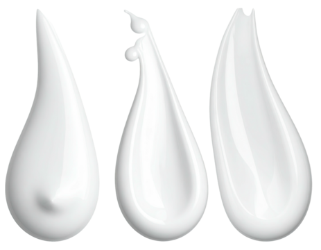 Abstract pattern of white creamy liquid droplets and blobs on black background