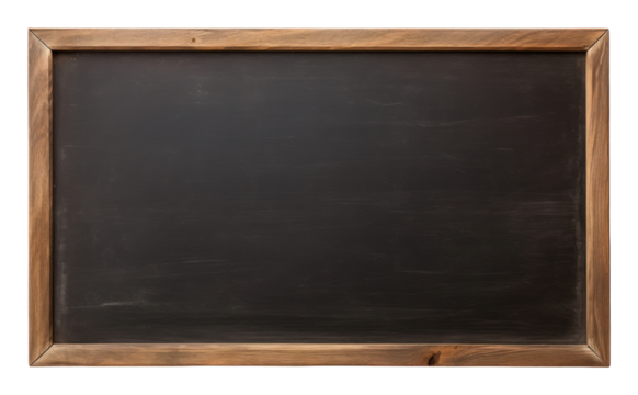 A chalkboard isolated on a transparent background, wooden frame, vintage style, flat lay.