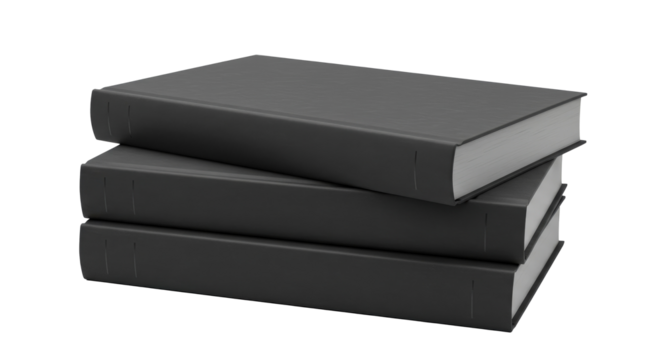 Two black books isolated on white background, hardcover reading materials, minimalistic study setup, literary or educational concept