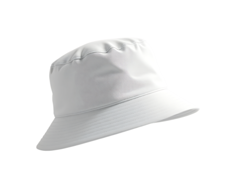 A stylish white bucket hat is isolated against a black backdrop, perfect for fashion and accessory design mockups, transparent background. Ai Generated Images