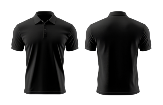 Black Polo Shirt Mockup Front and Back View, Isolated on Transparent Background, polo shirt, apparel mockup, clothing design