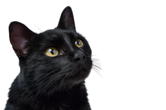 Black cat looking up, isolated on transparent background